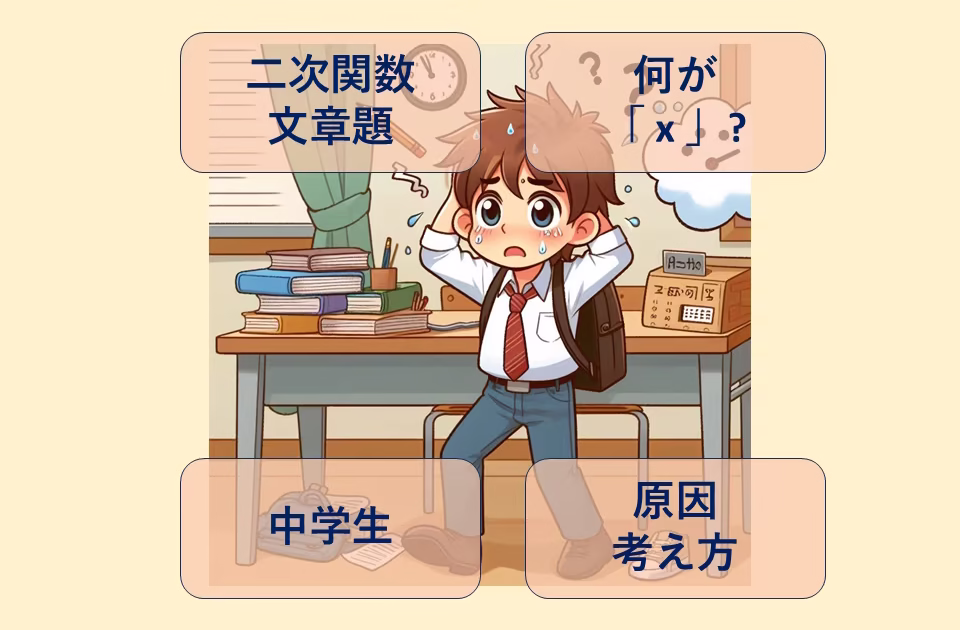 二次関数の文章題で「何を x にするか」迷うのは、方程式と文章題の性質の違いに気づけていないことが大きな原因です。